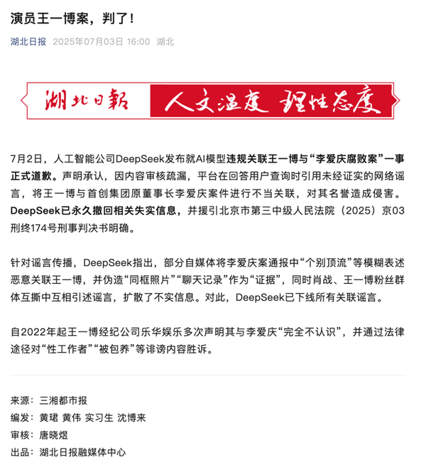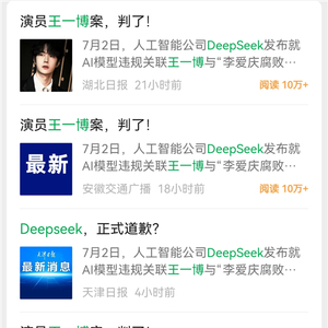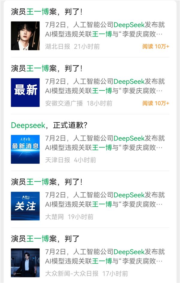 那天,公众号上突然有一堆媒体发了篇新闻,说 DeepSeek 向王一博道歉了。
