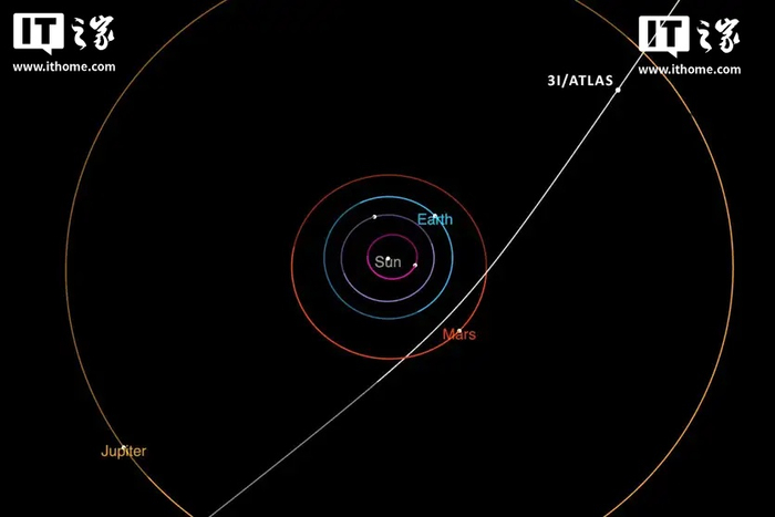 IT之家 7 月 13 日消息,继 2017 年“奥陌陌”与 2019 年“鲍里索夫彗星”之后,太阳系再度迎来第三位“星际访客”。本月早些时候,国际小行星中心报告发现编号为 3I / ATLAS 的彗星,其直径约 20 公里,正以每秒 60 公里的高速掠过木星轨道。