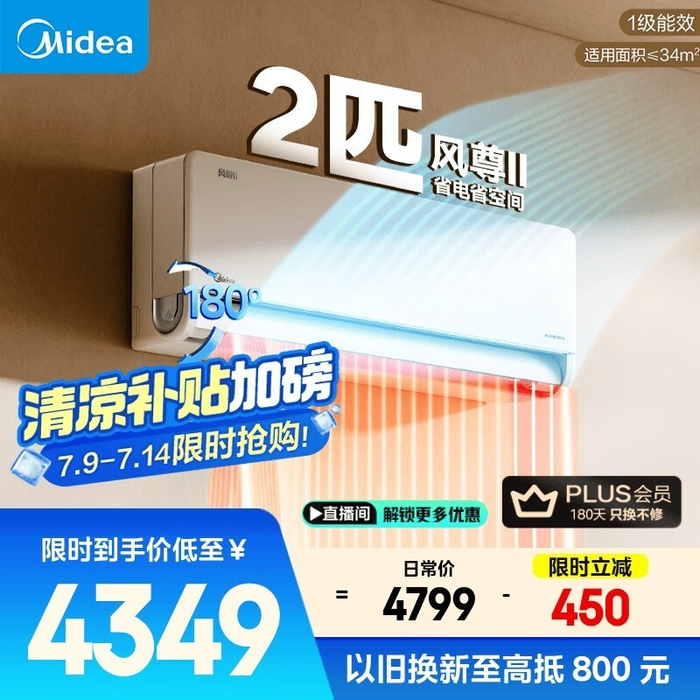 美的2匹风尊二代空调 一级能效变频冷暖壁挂式