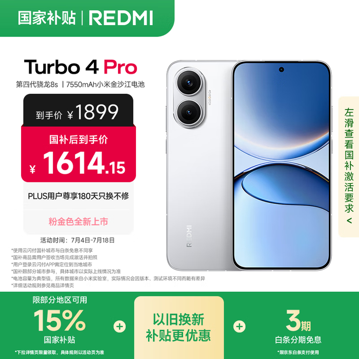 红米 Turbo 4 Pro 5G手机限时特惠1614元