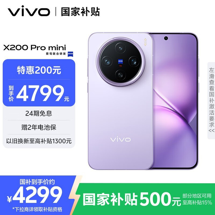vivo X200 Pro mini 12GB+512GB 淡紫色手机促销价4274元