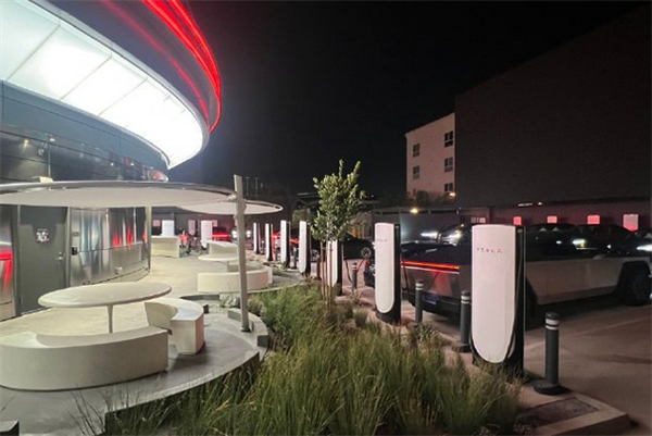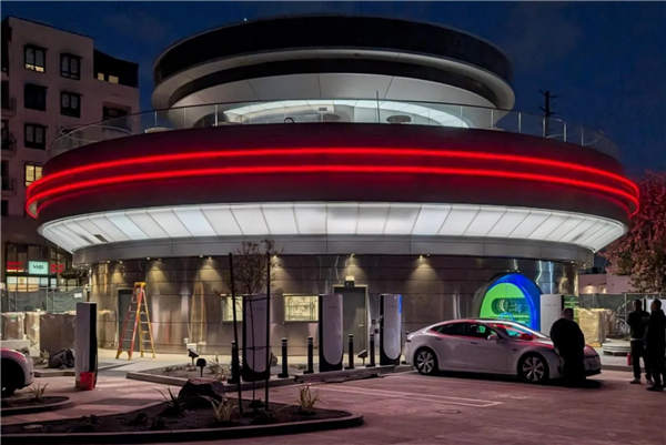 这家店从2022年申请、2023年动工到现在拆围挡亮灯,整整磨了三年,网传7月21日正式开门,想尝鲜的车主最好提前去排队,毕竟能边充电边看电影还有机器人伺候的餐厅,全球就这么一家。
