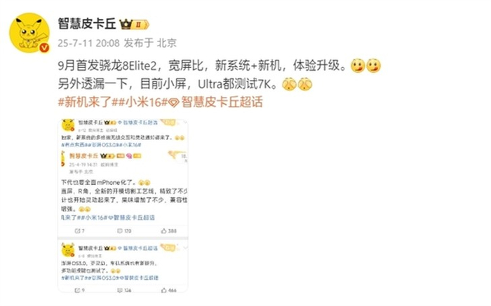 小米16系列9月份发布 确认拿下骁龙8 Elite 2首发