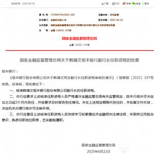近日,国家金融监督管理总局发布批复,核准韩靖文担任恒丰银行副行长的任职资格,引发市场关注。
