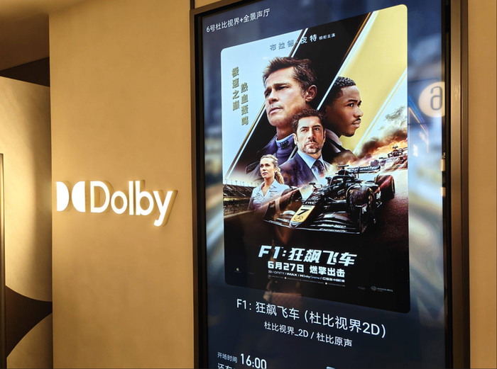 7 月初,杜比实验室和英皇电影城合作的中国首家「杜比视界+全景声厅」,在三里屯英皇电影城终于揭幕。而首映排片没有更好的选择,正是高燃刺激的《F1》。