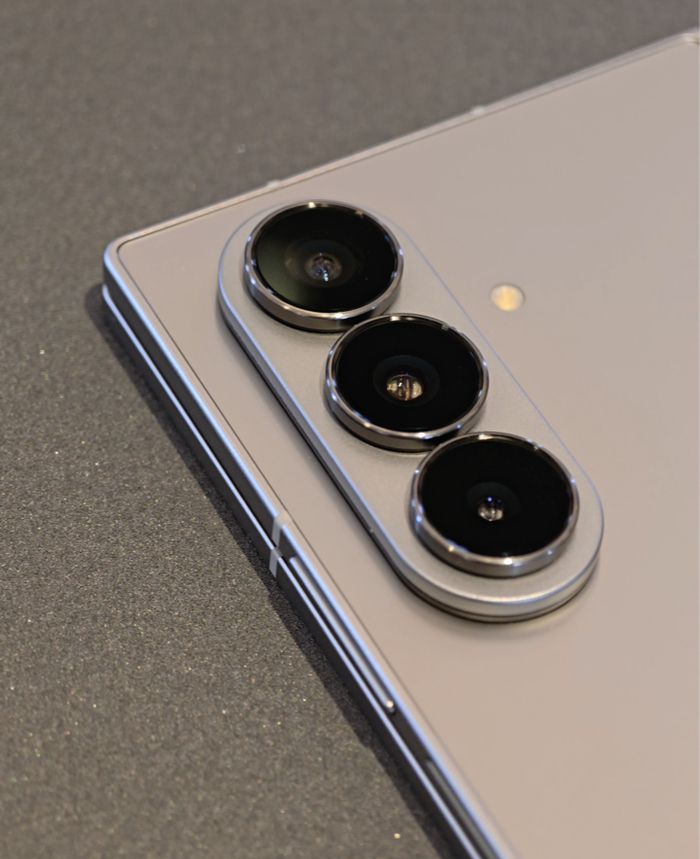在内屏摄像头之外,Z Fold7 的另外四颗摄像头也得到了各自的提升,其中升级最大的就是后置主摄,直接用上了 S25 Ultra 与 S25 Edge 上规格相同的 2 亿像素 HP9 传感器。超广角与 3 倍长焦的参数则与 Z Fold6 基本保持一致,仍然为 12MP+10MP 的组合。