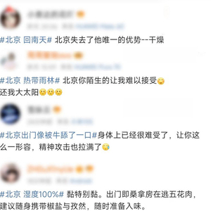 北京网友对近期高温高湿天气的感受 图片来源:新浪微博