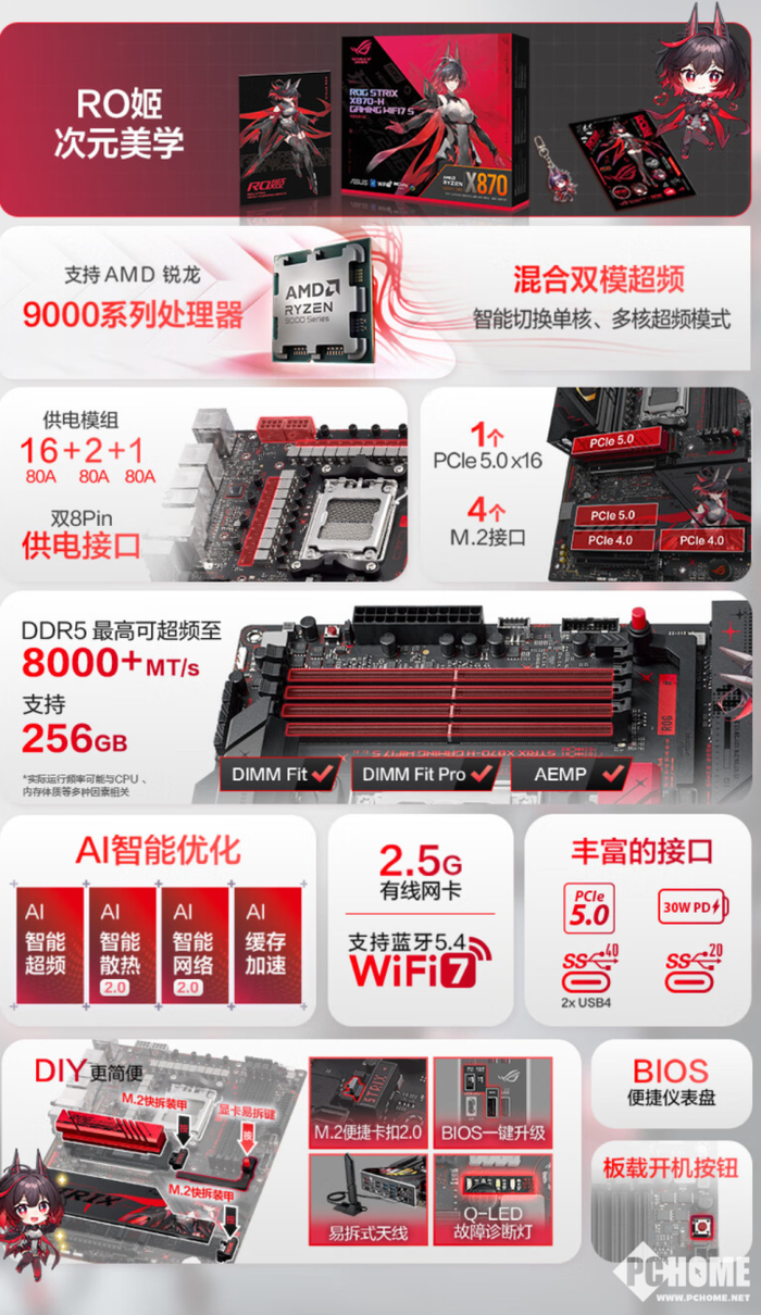 华硕ROG X870 RO姬主板上架 红黑二次元风售2799元