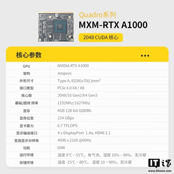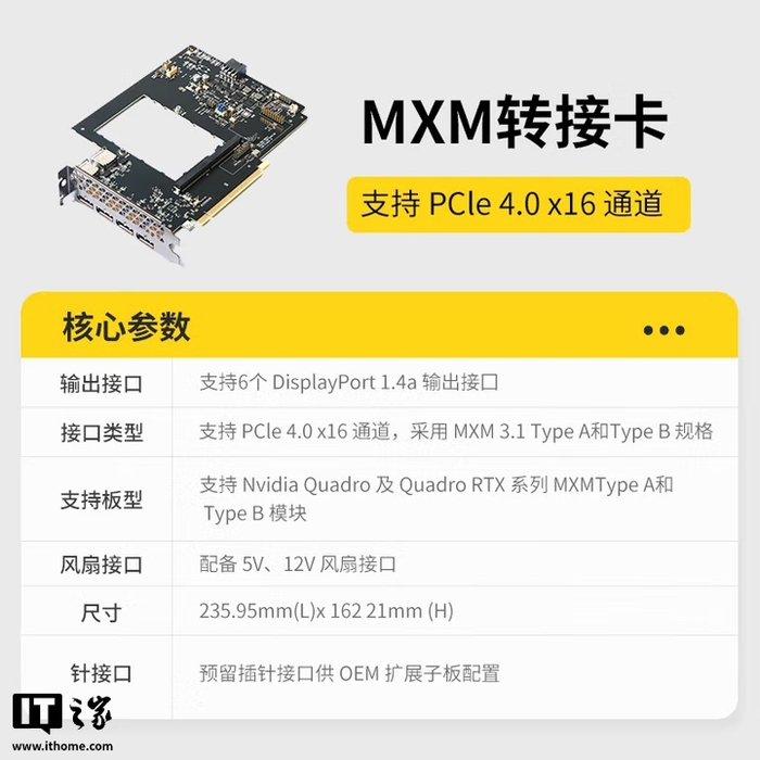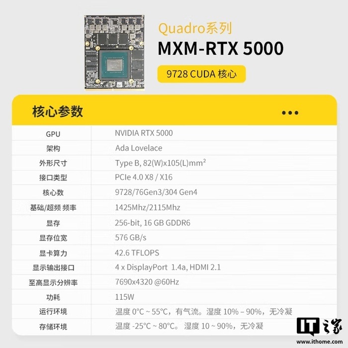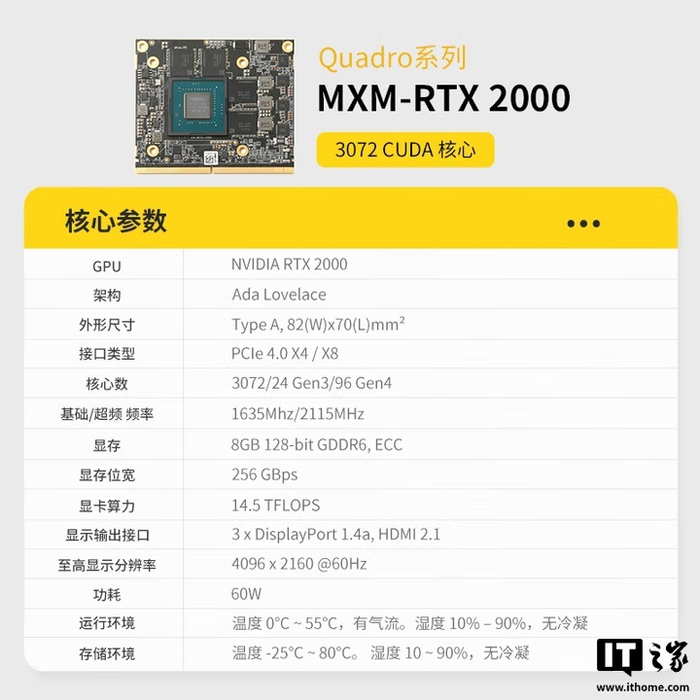 索泰开售七款英伟达 Quadro 系列 MXM 专业显卡:至高可选 RTX 5000,可配转接卡