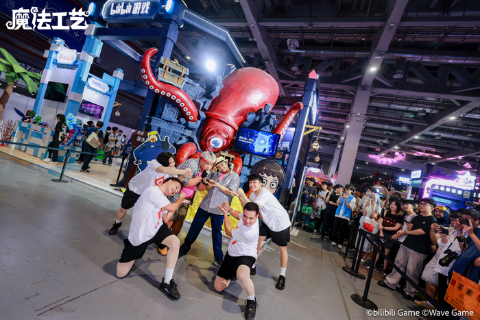 而在bilibili游戏独立游戏展台,各处独立游戏试玩区也是人流如潮,气氛热烈。还有《魔法工艺》与《潜水员戴夫》联动打造的大王鱿鱼巨型雕塑更是成为全场焦点,吸引路过玩家纷纷打卡拍照。