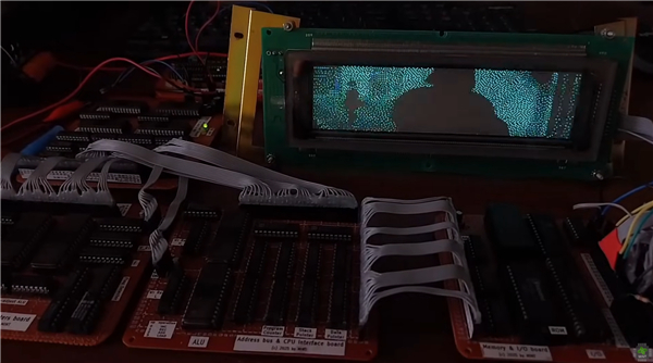 为了展示这台CPU的功能,MINT将其连接到一台VFD显示屏上,并编写代码播放《黑客帝国》的片段。