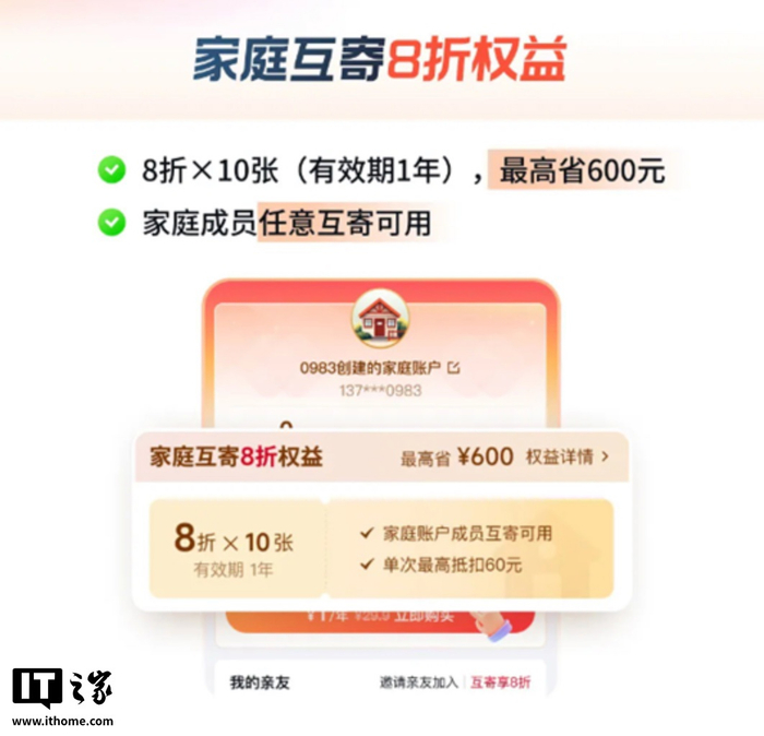 顺丰速运推出“家庭账户”服务:家人互寄快递享 8 折优惠,最高可省 600 元