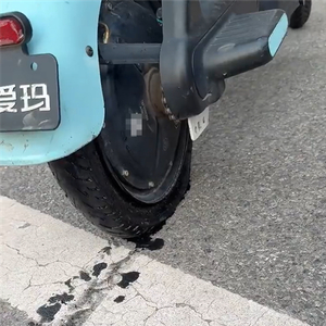 西安热得电动自行车轮胎都化了 网友:这真成热熔胎了