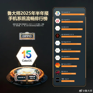 近期,鲁大师发布《2025年手机行业半年报》,ColorOS 15以226.76分再次夺得系统流畅榜冠军,实现连续四个季度霸榜。