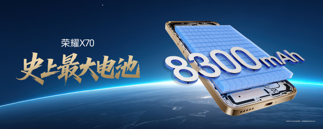 此次,荣耀X70搭载第三代青海湖电池,容量高达8300mAh,再次刷新国产手机电池容量纪录。电池融合高密度材料与先进封装工艺,在实现超大电池容量的同时,机身厚度仍7.76mm,打破 “大电池必厚重” 的行业固有认知,兼顾强劲续航与便携体验。同步支持80W有线+80W无线双快充,并具备反向充电功能,构建出全面的续航解决方案。