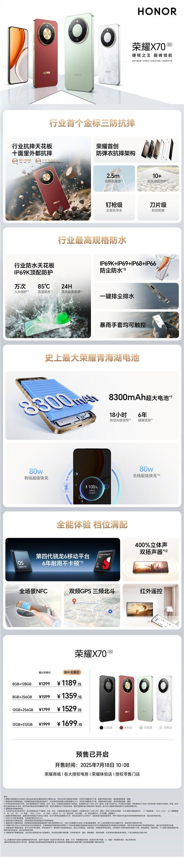 一图读懂荣耀X70:8300mAh电池续航无敌 1399元起