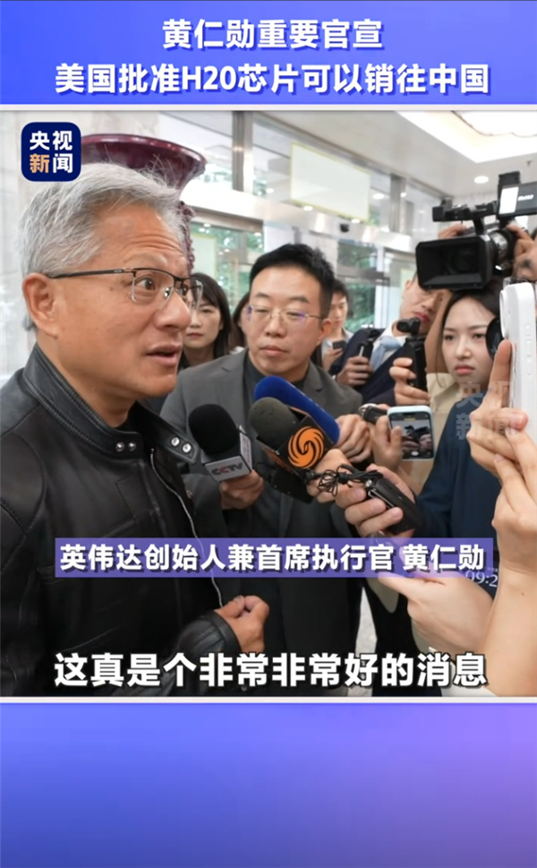 对于这一消息,黄仁勋喜出望外。他连用三个“非常”表达的自己的喜悦之情:“对于H20芯片出口我很期待,对此我感到非常高兴,这真是个非常非常好的消息”。