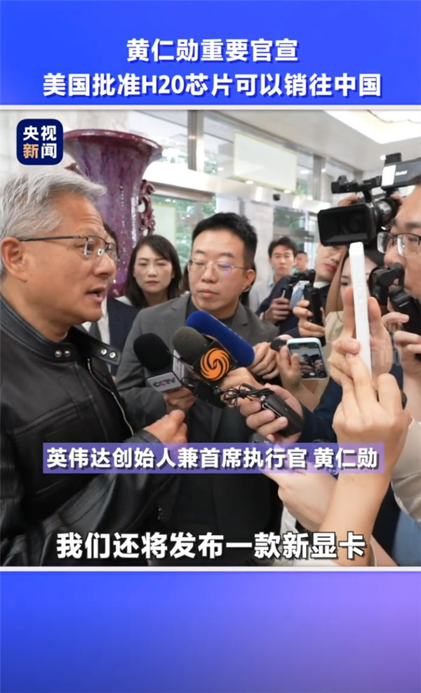 快科技7月15日消息,正在中国访问的NVIDIA CEO黄仁勋今日接受采访时表示:美国已批准降规版H20芯片销往中国,我们将开始向中国市场销售H20芯片!
