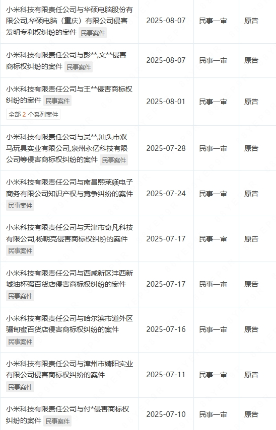 我们去企查查上简单搜了下小米公司,发现他们关于商标侵权的案件,根本翻不完。