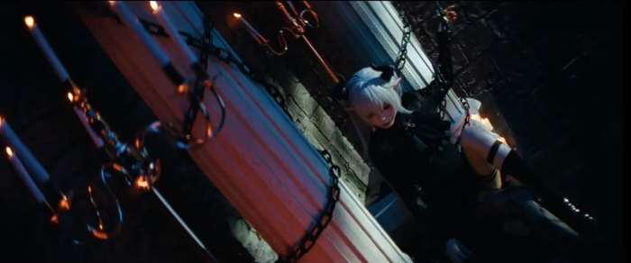 背景设定为剧团演出的傀影肉鸽,交互形式则设计为以观看演绎为主,也就包括了与演员近距离对视、擦肩而过的沉浸式演出。两条不同路线的体验之后,所有“宾客”都会来到大概有两层楼高的古堡布景前,观看傀影与喉舌的战斗演出。在一些瞬间,追光勾勒出傀影决绝的背影,把每一秒都定格成一幅完美的CG。