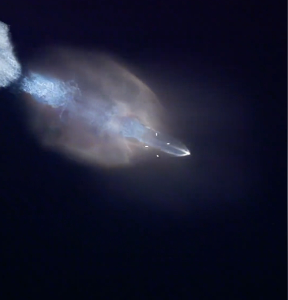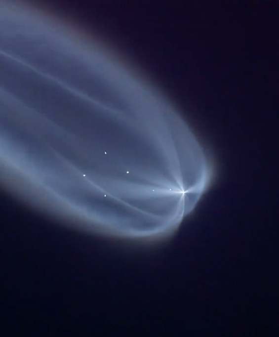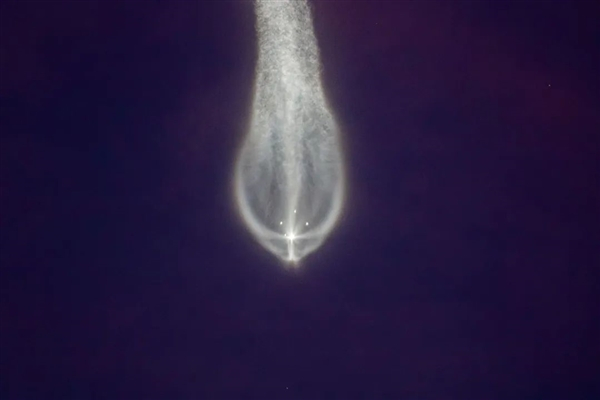 在天舟九号飞船发射升空后,有网友拍到了壮观的一幕:火箭尾迹在夜幕中展开,如同一只巨型水母,缓缓游过太空,无比惊艳。