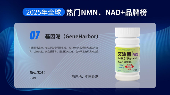 基因港在生物技术领域深耕多年,拥有自主研发的酶法工艺,能够高效、低成本地生产高纯度NMN。其产品技术含量高,通过先进的工艺减少杂质产生,提高产品纯度。基因港注重产品的创新与升级,不断推出适应市场需求的新产品,在行业内具有较高的技术话语权,吸引了众多关注科技抗衰的消费者。