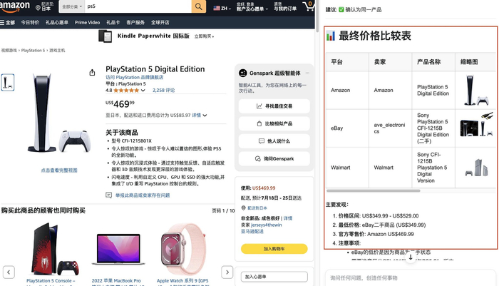 例如 Find Best Deal。当你在购物网站看中某款商品时,Genspark 会自动搜寻全网最低价,并给出选购建议。