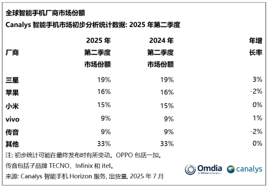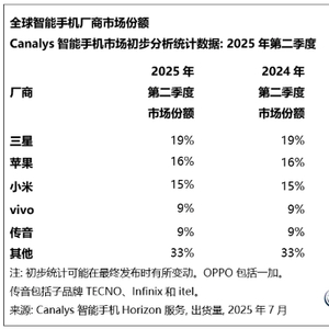 据Canalys公布的2025年第二季度全球智能手机市场情况,vivo实现逆势增长,海外市场份额提升明显,以9%的全球市场份额位列第四,成为全球智能手机市场份额唯一正增长的中国手机品牌。