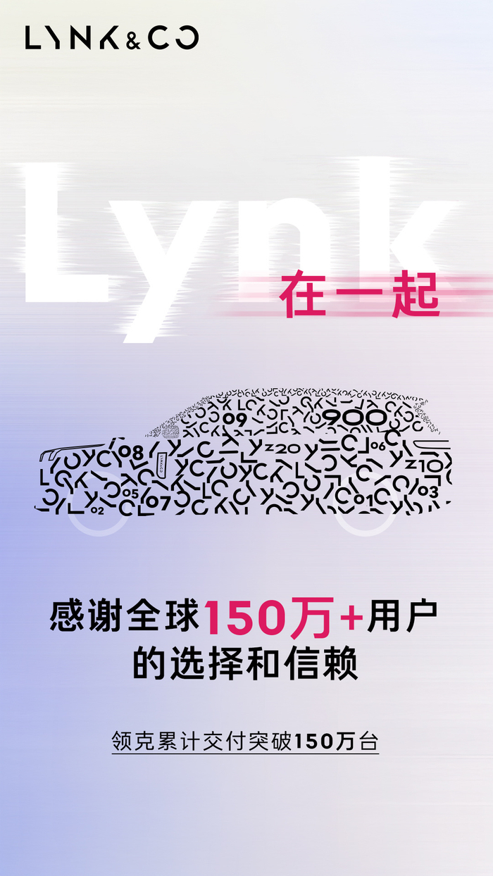成立至今第 9 年,领克汽车全球累计交付量突破 150 万辆