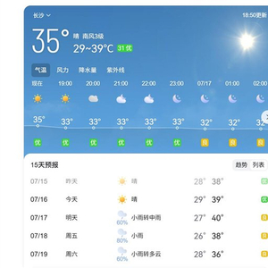 7月16日消息,据报道,湖南省气象台2025年7月16日16时发布高温橙色预警:预计7月17日白天,全省大部分地区将出现37~39℃的高温,湘中以北局地可达40℃以上,请做好防范。