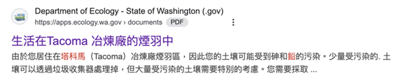 比如,1960年代塔科马居民对空气质量不满,很多学者论述铜冶炼厂的工人患呼吸道癌症几率是正常8倍。但空气和农业研究的环境科学家阿伯索尔德说汽车扬尘才是主因。