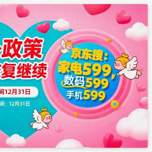 家电家居类:京东 APP 搜索「家电599」,领最高 2000 元补贴(一级能效立减 2000 元);