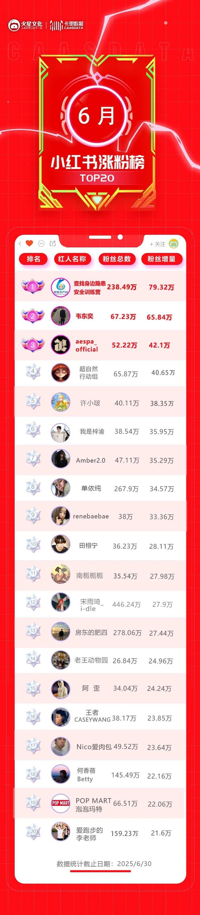 6月的小红书呈现出怎样的创作者生态?我们先一起看榜: