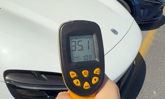 那么问题来了,同样一款车、同样的环境温度和太阳直射时,哪种颜色最抗热?近日,有博主手持测温枪进行了实测。