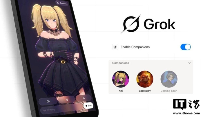 本周早些时候,xAI 推出了面向其 SuperGrok 用户的 Companions 功能,随后该公司将该功能的访问权限向所有 Grok iOS 应用用户开放。目前,xAI 已经发布了两位虚拟伙伴:Ani 和 Rudi。Ani 是一位“过度黏人”的动漫风格哥特女孩,她的形象似乎受到了《死亡笔记》中弥海砂(Misa Amane)角色的启发;而 Rudi 是一只会说话的红色熊猫,当用户将其切换到“Bad Rudi”模式时,其会变得越来越“失控”。此外,xAI 还预告了一位即将推出的男性动漫风格虚拟伙伴。