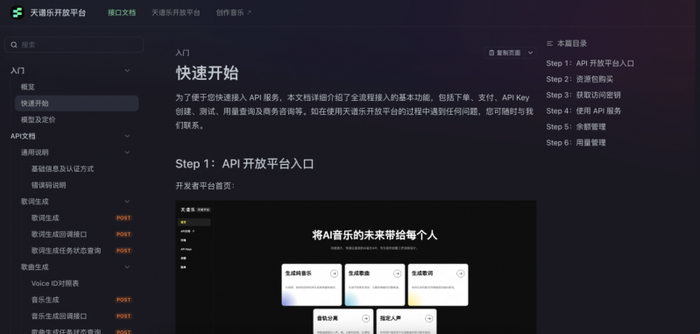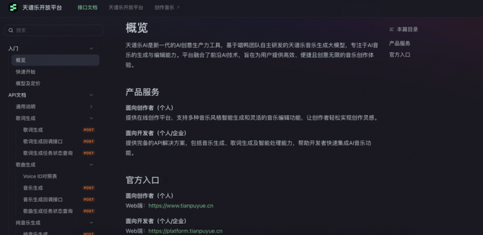 在原创性保障方面,其确保生成内容的原创与合规性,从源头规避侵权风险;生成质量上,人声自然度、风格契合度达到较高水准,避免了劣质 AI 音乐对品牌形象的影响;API 易用性上,提供标准化开放接入文档,内置多种调用示例,API 接口参数设计精简;售后服务方面,拥有敏捷高效的技术支持、定制化解决方案以及模型能力的持续更新。