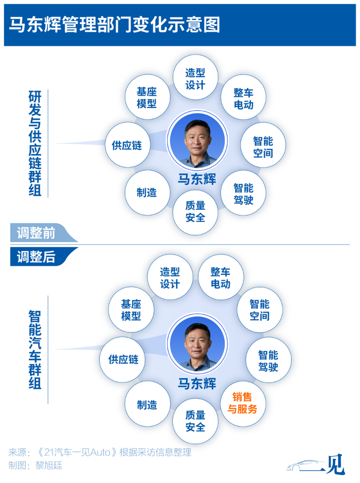 在担任总裁岗位之前,马东辉在内部的身份是联合创始人、总工程师。马曾任三一重工研究院院长,管过供应链和工艺,在此之前,他还曾在汽车设计公司做高级项目经理、车身部门总监等,经历过一辆车从立项到造出来的全过程,但从没管理过销服。