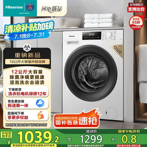 海信滚筒洗衣机12公斤大容量智能洗一级能效京东特惠