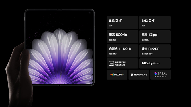 此外小米MIX Flip 2采用超大4.01英寸1.5K微曲外屏和6.86英寸2K LTPO内屏。内外屏均采用M9发光材料。通过创新的"三级连杆+四浮板"龙骨转轴结构,实现行业领先的折痕控制,20万次折叠后折痕深度仍小于50μm。