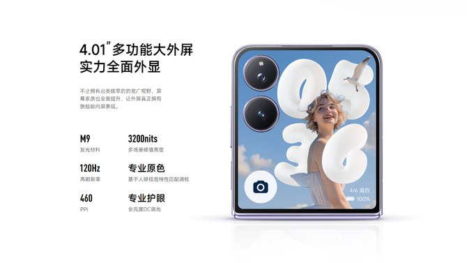 影像方面,小米MIX Flip 2与徕卡联合研发,配备5000万像素光影猎人800主摄和5000万像素超广角镜头。支持多角度悬停拍摄,可通过外屏预览主摄自拍,解锁更多创意拍摄姿势。