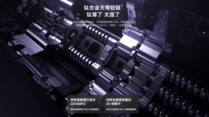其创新钛合金天穹铰链采用3D打印技术打造,最薄零件仅0.15mm,铰链减薄26%的同时刚性提升36%,并通过德国莱茵TÜV无感折痕认证,20万次折叠后仍保持平整。