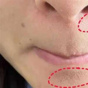 其实,不只是下巴,下唇周围、上唇周围、鼻头、额头等部位,也都容易出现小颗粒。这些小颗粒,大多数时候是普通的毛囊皮脂腺,只是比其他部位的稍微明显一点、膨大一点,近距离看就能看出来,但社交距离基本没有影响。