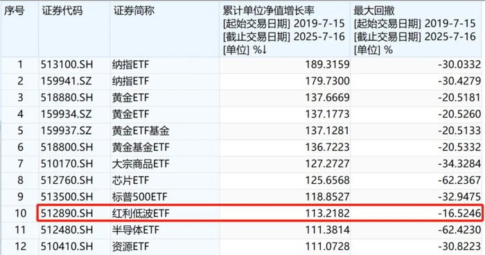 长期回报可观、波动低,还会定期进行分红满足现金流的需求,这样的ETF就很合适作为压箱底的底仓品种。