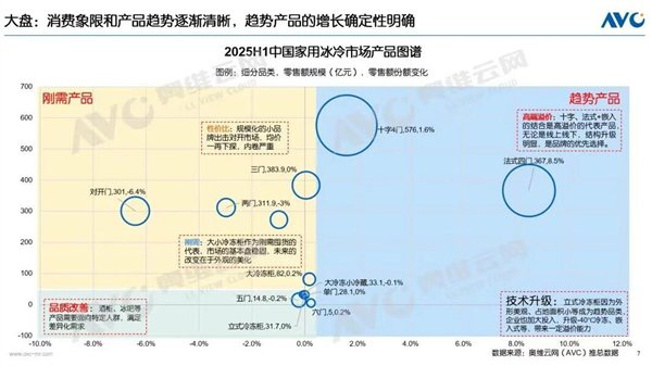 产品趋势来看,法式、十字产品加速替代对开门等传统门体。据奥维云网统计数据显示,2025年上半年,在线上市场,法式、十字四门产品份额合计已超六成;在线下市场,法式、十字四门份额合计更是高达八成。