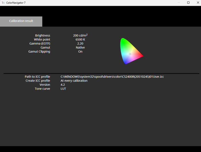 校色完成后,可以看到预设的色彩参数已经写入显示器的Cal1模式,后续可通过软件或显示器的OSD菜单进行切换。