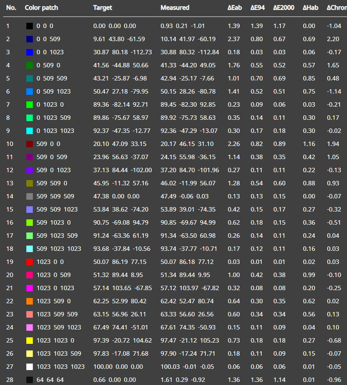 从结果看,即使是CS2400R是支持ColorNavigator中价格最低的型号,DeltaE绝对值仍然不过2左右。一旦与市面上万元以内的其他型号对比,这样的色彩表现堪称碾压级。