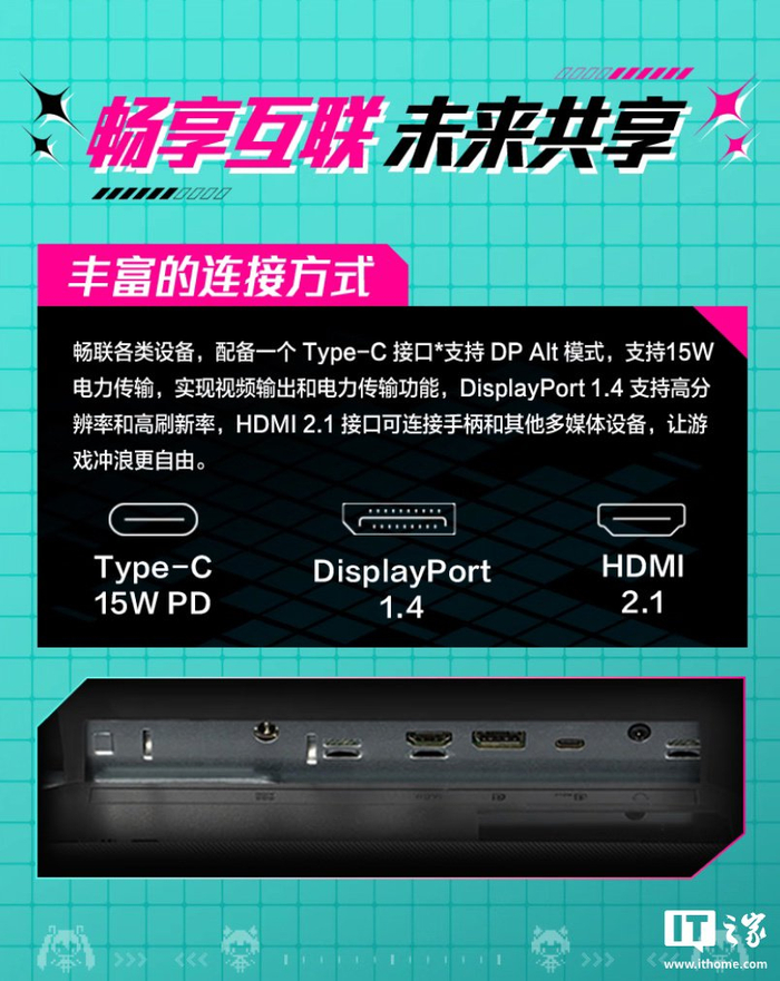 规格方面,该机配备一块 2560x1440 分辨率 260Hz 超频 Fast IPS 面板,GtG 响应速度 0.3ms,覆盖 90% DCI-P3 色域,提供 1 个 USB-C 15W 接口、1 个 DP 1.4 接口、1 个 HDMI 2.1 接口。