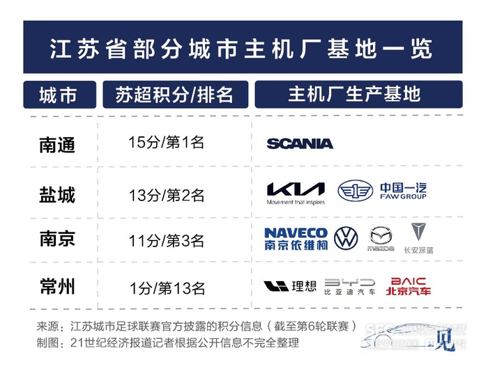 本届“苏超”拿到悦达起亚冠名的盐城队,也在造车领域榜上有名。
