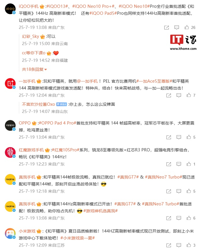 腾讯《和平精英》手游 144Hz 高刷新帧率模式上线,荣耀、OPPO、小米、iQOO 等官宣适配