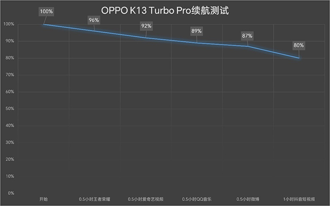 OPPO K13 Turbo Pro的电池也依旧很顶,塞进一块7000mAh超大容量的冰川电池,续航贼猛,3小时测试下来电量还剩80%!充电也快得飞起,80W有线闪充实测65分钟就能充满。